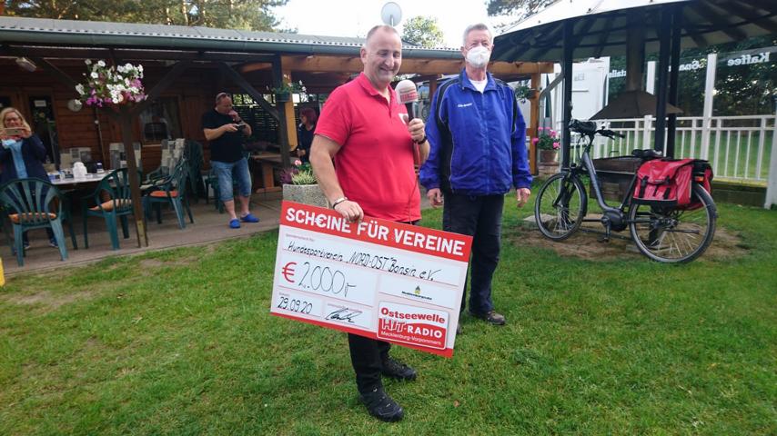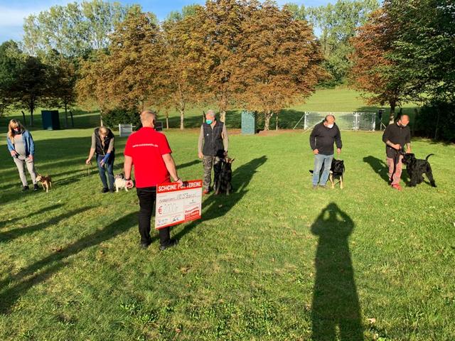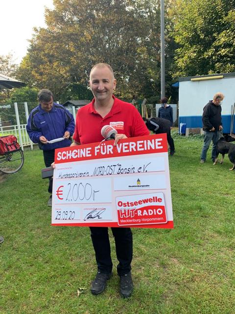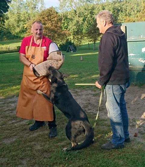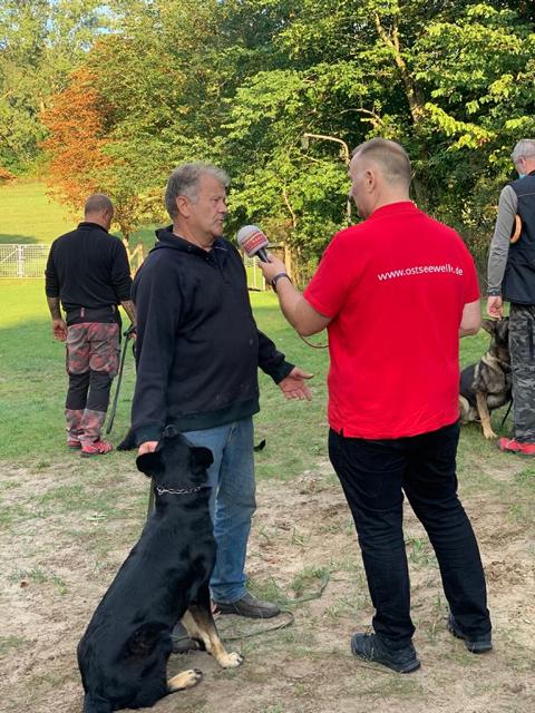 Auf Initiative unseres Sportfreundes Mathias "Matze" Kühl, der uns bei der Aktion "Scheine für Vereine" bei der Ostseewelle schon mehrfach angemeldet hat, wurde unser Verein am Dienstag ausgelost. Schnelle Rückmeldung war angesagt und erfolgte auch prompt von mehreren Mitgliedern. Nach einem regen Telefonaustausch kündigte sich Ostseewelle-Reporter Alexander Stuth und Assistentin zum Nachmittag für die Übergabe und Auszählung der zusätzlichen Stimmen per WhatsApp auf unserem Ausbildungsgelände an. Die Spannung hielt bis zum Ende der Frist um 17.00 Uhr, denn ging es doch darum zu den schon gewonnenen 1000,00 € zusätzliche Gelder einzuspielen. Dazu aktivierten unsere Sportler all ihre Kontakte in nah und fern, denn wir benötigten ihre Unterstützung in Form einer WhatsApp-Nachricht an den Sender, wobei jedes abgegebene Votum 5.00 € zusätzlich in die Wertung einbringen sollte. Das wir am Ende die maximal mit 2000,00 € limitierte Summe zusammen bekamen, löste bei uns natürlich einen Sturm der Freude aus. Der Erlös wird unserer Arbeit bei der Ausbildung zugute kommen, denn einige in die Jahre gekommenen Gerätschaften bedürfen einer dringenden Auffrischung bzw. Ersatz. Zum Abschluß hatte sich Alexander noch einen Einblick in unsere praktische Arbeit verschaffen dürfen, indem er sich interessehalber einmal mit einem "Beißarm" ausstaffierte und einem Schutzhund "ganz nah" kommen durfte. Diese Erfahrung hat dann doch einen bleibenden Eindruck hinterlassen. Wir bedanken uns recht herzlich bei allen, die uns bei dieser Aktion so tatkräftig unterstützt haben.