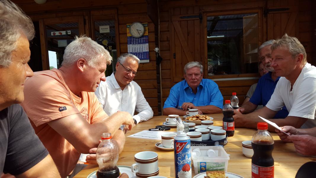Am heutigen Ausbildungstag wurden unsere Sportfreunde durch einen Besuch des Bürgermeisters der Gemeinde Ostseebad Heringsdorf beehrt. Mit von der Partie, Dr. Stefan Rudolph, seines Zeichens Staatssekretär im Ministerium für Wirtschaft, Bau und Tourismus sowie der Amtsvorsteher des Amtes Usedom-Süd Karl - Heinz Schröder. Anlass war die Übergabe eines Schecks, welcher aus dem Erlöss der 2. kommunalen Fundsachenversteigerung der Inselverwaltungen erzielt und unter den Vereinen der Insel verteilt wurde. In einer lockeren Runde wurden dann auch Fragen zu unserem Sportgeschehen behandelt, zumal aus dem Metier des Hundesports einiges an Aufklärungsbedarf bestand. Wir bedanken uns für die uns entgegen gebrachte Aufmerksamkeit.