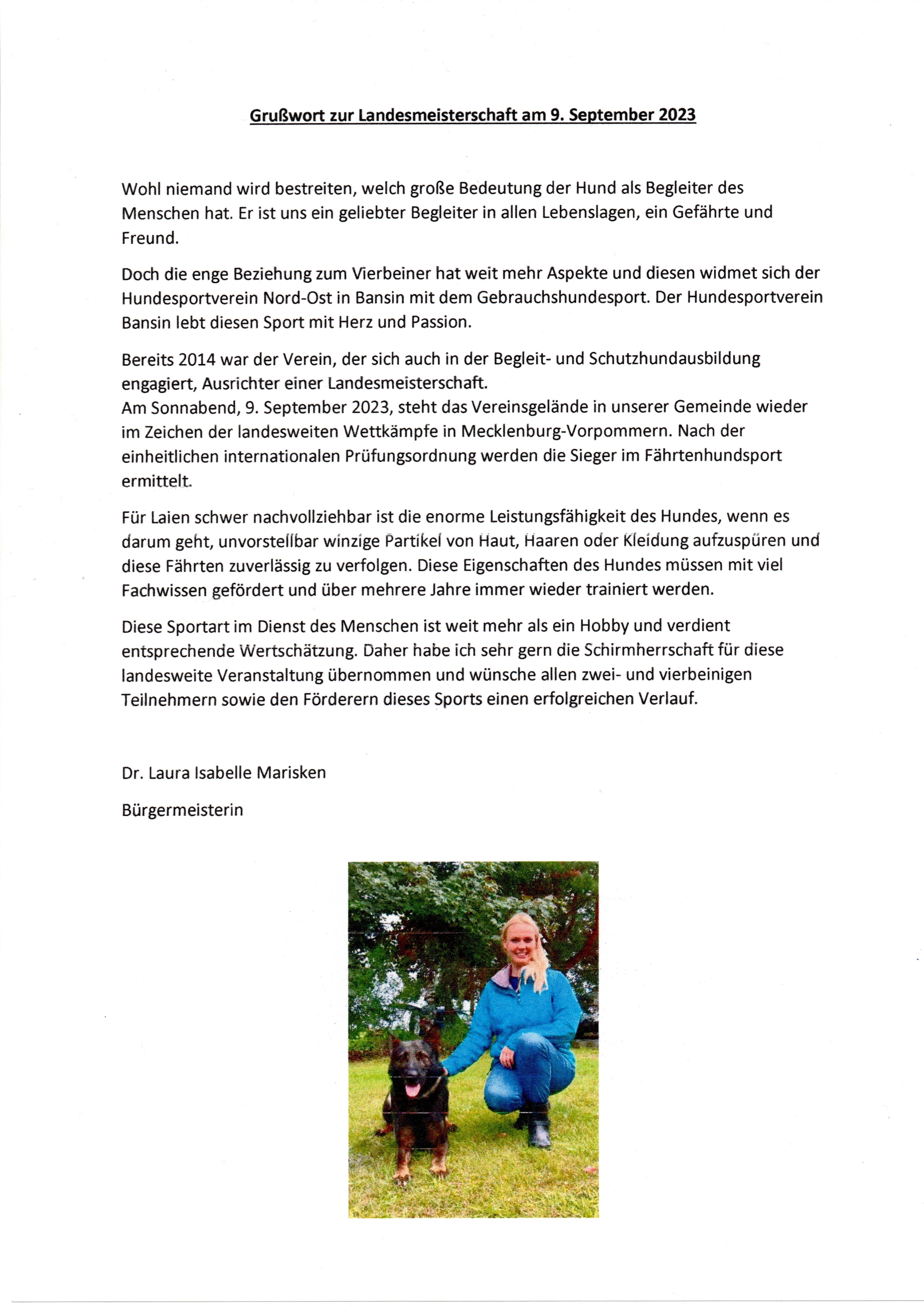 Zum wiederholten Male hat der Hundesportverein „Nord Ost Bansin“ e.V. am 14.09.2024 die diesjährige Landesmeisterschaft der Fährtenhunde Mecklenburg Vorpommern ausgerichtet.